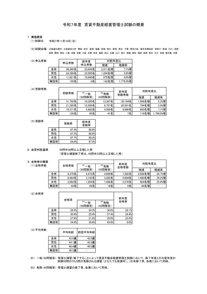 本日、11/16に実施された、令和7年度賃貸不動産経営管理士試験の結果が発表されました。