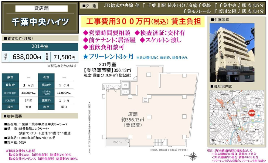 【重飲食相談可の貸店舗】千葉中央ハイツ201|賃料月額638,000円(税込)