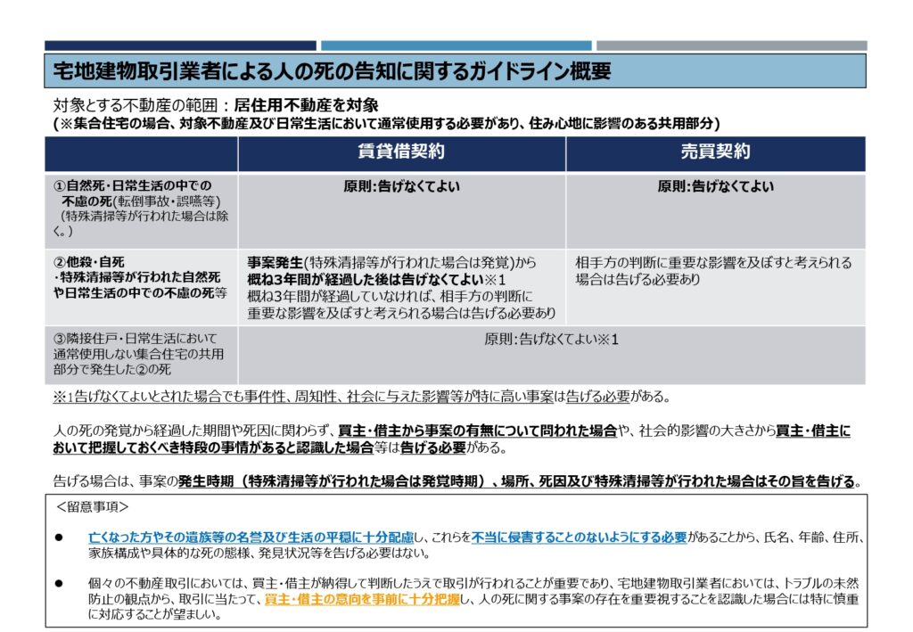 出典:公益社団法人全国宅地建物取引業協会連合会「宅地建物取引業者による人の死の告知に関するガイドライン概要」