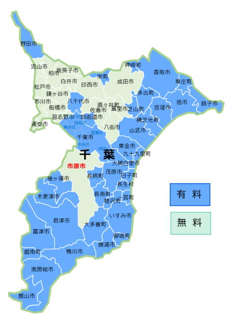 県内の家庭系ごみ有料化の導入状況(画像出典:市原市一般廃棄物処理基本計画決定骨子案)