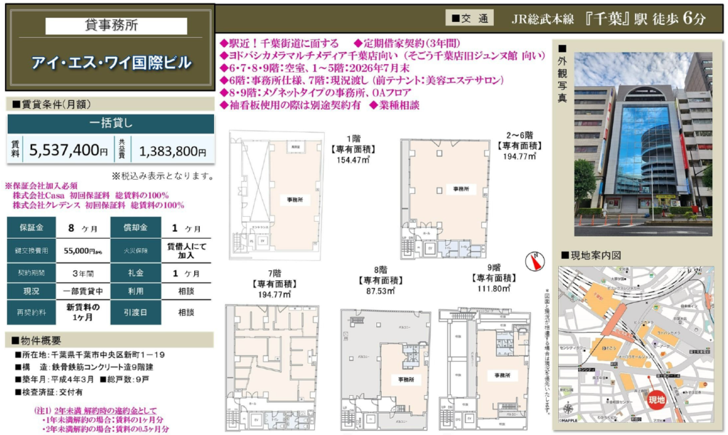 【ヨドバシカメラ千葉対面の一棟貸しビル】アイ・エス・ワイ国際ビル|賃料月額5,537,400円(税込)
