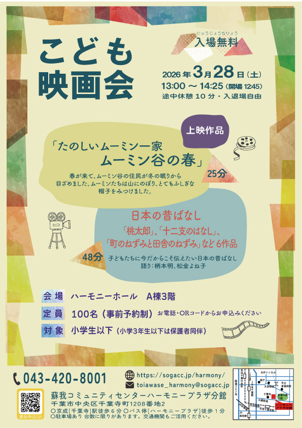 【入場無料】2026年3月28日(土)蘇我コミュニティセンターハーモニープラザ分館で「こども映画会」開催!ムーミンや日本の昔ばなしを楽しもう