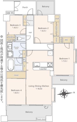 新規内装リフォーム物件・専有面積約91㎡・三方角部屋