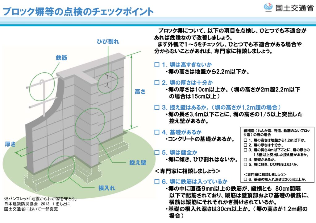 国土交通省「ブロック塀等の点検のチェックポイント」