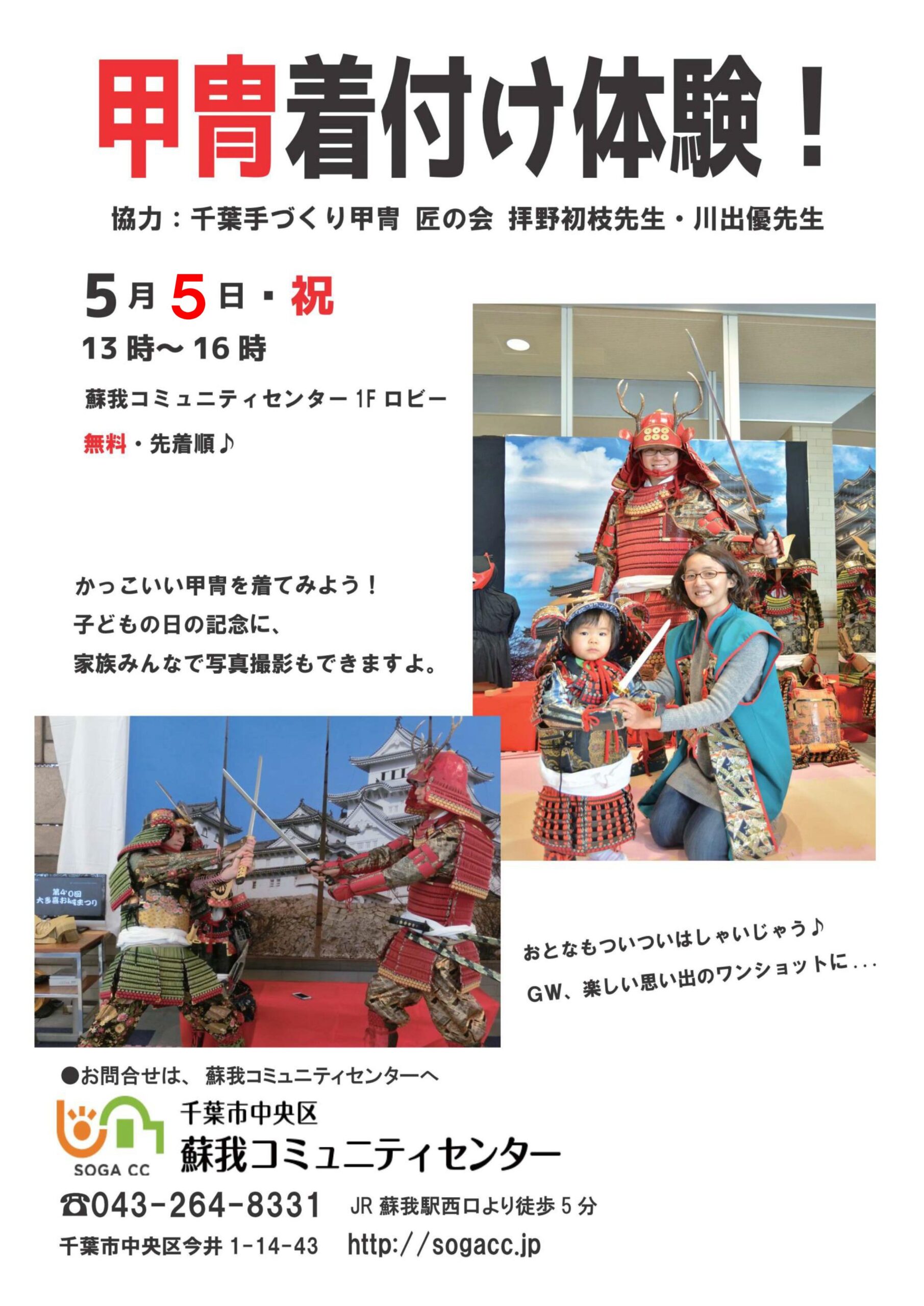 千葉市内で手軽に、かつお子様の記憶に残る特別な体験をするなら、5月5日(火・祝)こどもの日に、蘇我コミュニティセンターで開催される「甲冑着付け体験」がおすすめです。