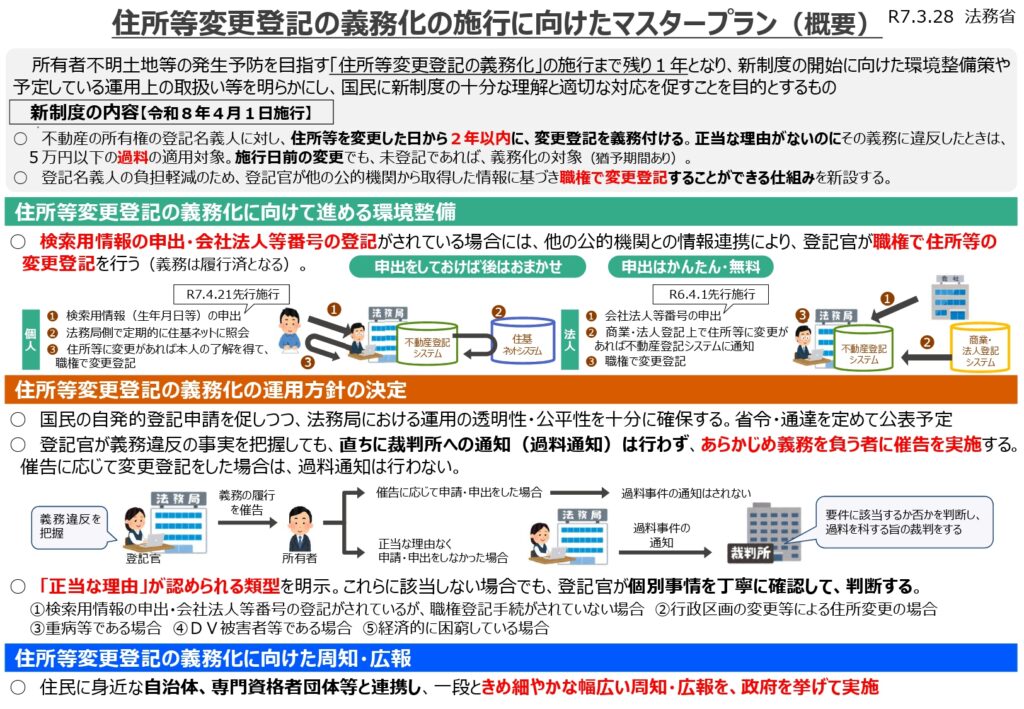 出典:法務省HP「住所等変更登記の義務化の施行に向けたマスタープラン(概要)」