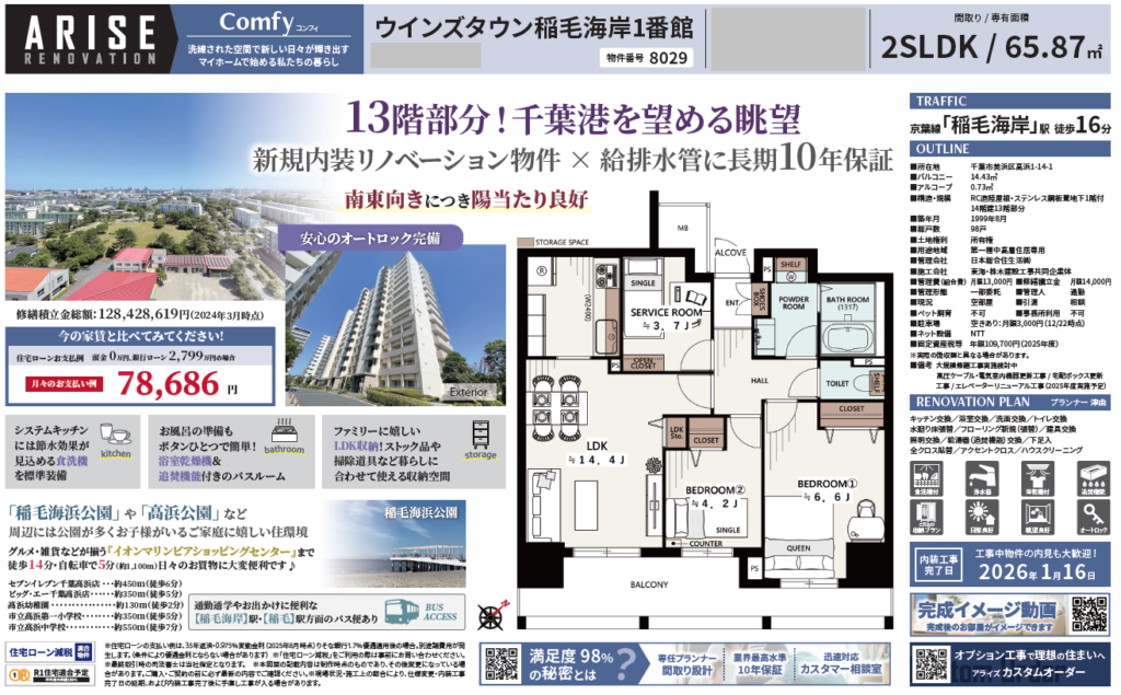【仲介手数料0円】ウインズタウン稲毛海岸1番館13階|2,680万円