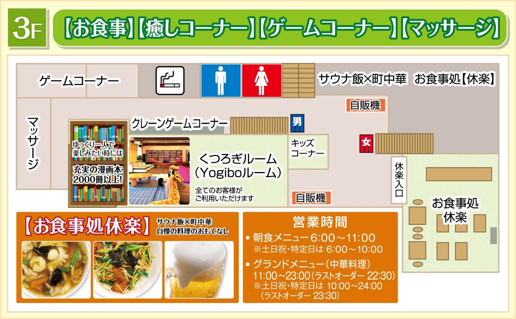 3階:お食事・癒やしコーナー・ゲームコーナー・マッサージ