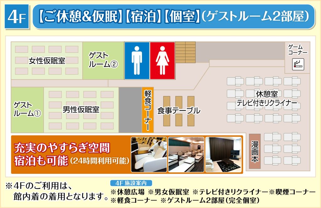 4階:ご休憩&仮眠・宿泊・個室(ゲストルーム2部屋)