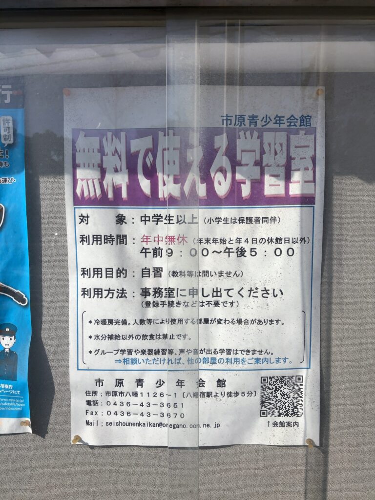 「八幡宿」駅から徒歩8分!無料で使える学習室