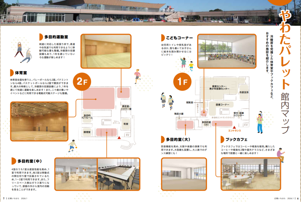 2026年3月2日(月)、JR内房線「八幡宿」駅徒歩8分の八幡運動公園跡地に市原市八幡総合市民センター「やわたパレット」が開業予定です。